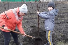 Стартовал конкурс «Сад Победы!» Обучающиеся начальных классов сажают деревья и ухаживаю за ними.