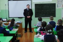 В 3б классе состоялась встреча с сотрудником полиции Фасиховым Ф.З. Он рассказал ученикам о службе сотрудников МВД.