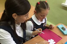 Обучающиеся педагогического класса для обучающихся начальных классов провели мастер – класс по изготовлению поздравительных открыток.