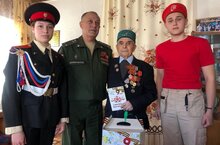 .Волонтёрларыбыз Газизуллин Ильяс белән Шакирова Диләрә сугыш ветераннарын котлауда катнаштылар.