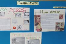 В рамках месячника национального воспитания и Тукая учащиеся 8-х классов выпустили стенгазеты, отражающие национальные блюда, национальные праздники, национальные узоры.