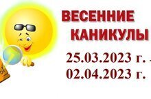 Весенние каникулы – с 25 марта по 2 апреля 2023 года.