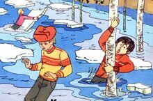 - старайтесь не обламывать кромку, без резких движений выбирайтесь на лед, заползая грудью и поочередно вытаскивая на поверхность ноги широко их расставив;