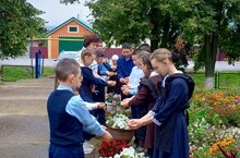 Учащиеся совместно с советником директора и педагогом-организатором почтили память жертв минутой молчания и символически «напоили» цветы. -
