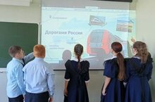 После линейки в школе прошли уроки «Разговоры о важном». Тема урока — «Дорогами России».