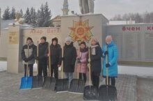 Волонтерская работа . Очищаем территорию памятника от снега 25.11.2023