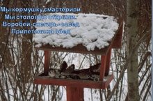 "Җимлек" операциясе/Операция "Кормушка" 16.01.2018 Папа мой мастеровой Вот принёс он к нам домой: Гвозди,доски,молоток. В этом деле он знаток! Вместе с папой мы вдвоём Кормушку смастерили И для птичек во дворе Столовую открыли. Прилетайте к нам скорей, Стайка серых голубей, Воробей,снегирь,синица. Приглашаем покормиться!