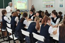 | У нас учатся: | 344 учащихся / Бездә 344 укучы укый |