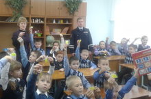 26 октября на встрече с первоклассниками побывал инспектор пропаганды дорожного движения Балтасинского муниципального района Садыков А.Р.. Он рассказал ребятам как надо вести себя на проезжей части дороги, о светоотражающих наклейках, отвечал на вопросы и подарил всем подарки.