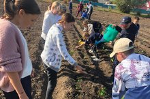 Учащиеся 6-б класса под руководством классного руководителя Жуковой И.Е. принесли саженцы виктории и посадили их на пришкольном участке.