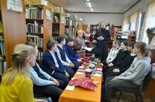 Сегодня учащиеся 8-б класса с классным руководителем Исаевой А.Н. побывали в гостях в сельской библиотеке. Здесь, совместно с сотрудниками СДК и библиотеки, они организовали Пасхальные посиделки - "Встречаем Великий праздник".