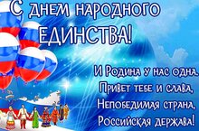 Поздравляем с Днем народного единства! Нельзя забывать историю своего народа и предков, ведь именно она сделала нас такими, какие мы есть сейчас. Много людей разных национальностей живет на нашей земле, и надо помнить, что мы едины. В этот день хочется пожелать силы духа, единства наций, свободы, независимости, стабильности и уверенности. А главное, мирного неба над всеми нами!