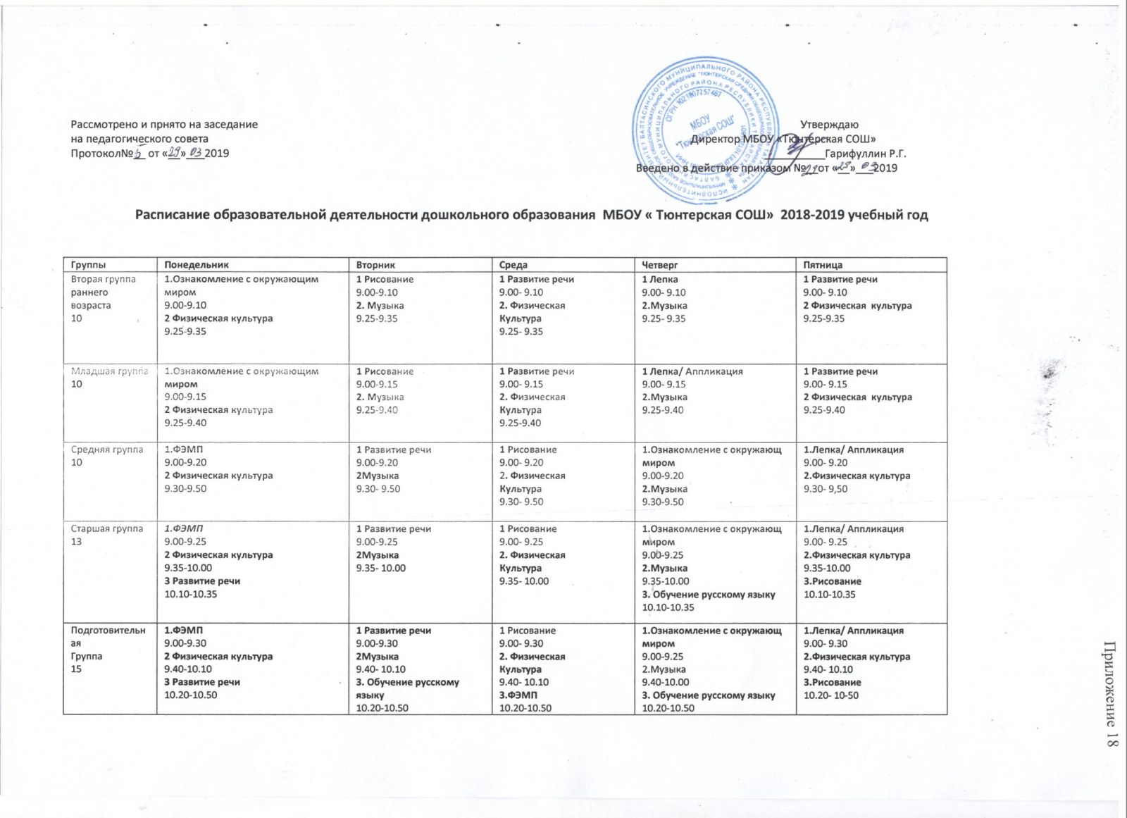расписание средней, старшей, подготовительной группы