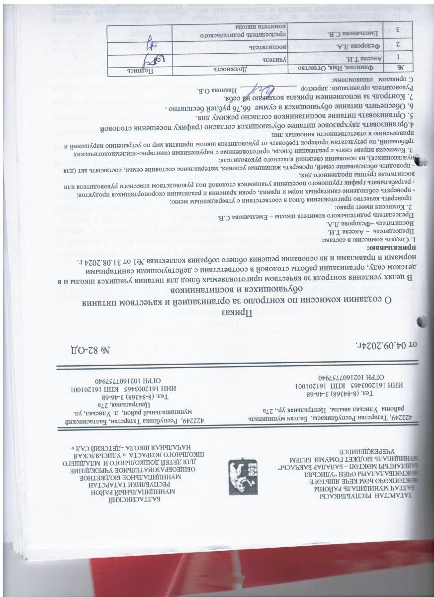 "Организация питания в ообразовательной организации"/Түкланүны оештыру