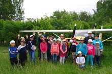 Балалар лагерь чорында тәрбиячеләр белән берлектә Сосна аэродромында сәяхәттә булдылар. Самолетка утырып карагач, очучы булу теләге уянды.