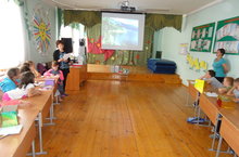 Авылыбызның китапханәчесе Гатауллина Миләүшә Россия көненә багышланган презентация күрсәтте һәм балаларга төрле уеннар уйнатты.