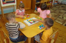 Мәктәпкәчә яшьтәге балалар фикерләү сәләтен арттыру буенча уеннар уйныйлар.