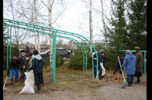 Бөек Ватан сугышында яу кырында ятып калган авылдашлар хөрмәтенә салынган һәйкәл янын 7 нче сыйныф укучылары агачлардан коелган яфраклардан чистартты.