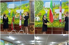 Бүген мәктәптә дәресләр Россия һәм Татарстанның дәүләт флагларын күтәрү белән башланды.