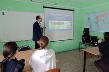 В современном обществе в последнее время особенно актуальна тема борьбы с терроризмом. В рамках реализации Плана мероприятий по противодействию идеологии экстремизма, антитеррористической защищённости в 8 классе было проведено занятие "Терроризм - угроза обществу".