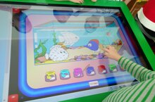 Режим моментларында һәм шөгыльләрдә балалар интерактив өстәлдэ бик кызыксынып уйныйлар. Бу уеннар аша балалар иҗекләрдән сүзләр төзергә, мисаллар эшләргә, саннарнын барлыкка килүен, аларны чагыштырырга, төсләрне аерырга өйрәнәләр.Тәрбияче: Гатиатуллина Э.Г.