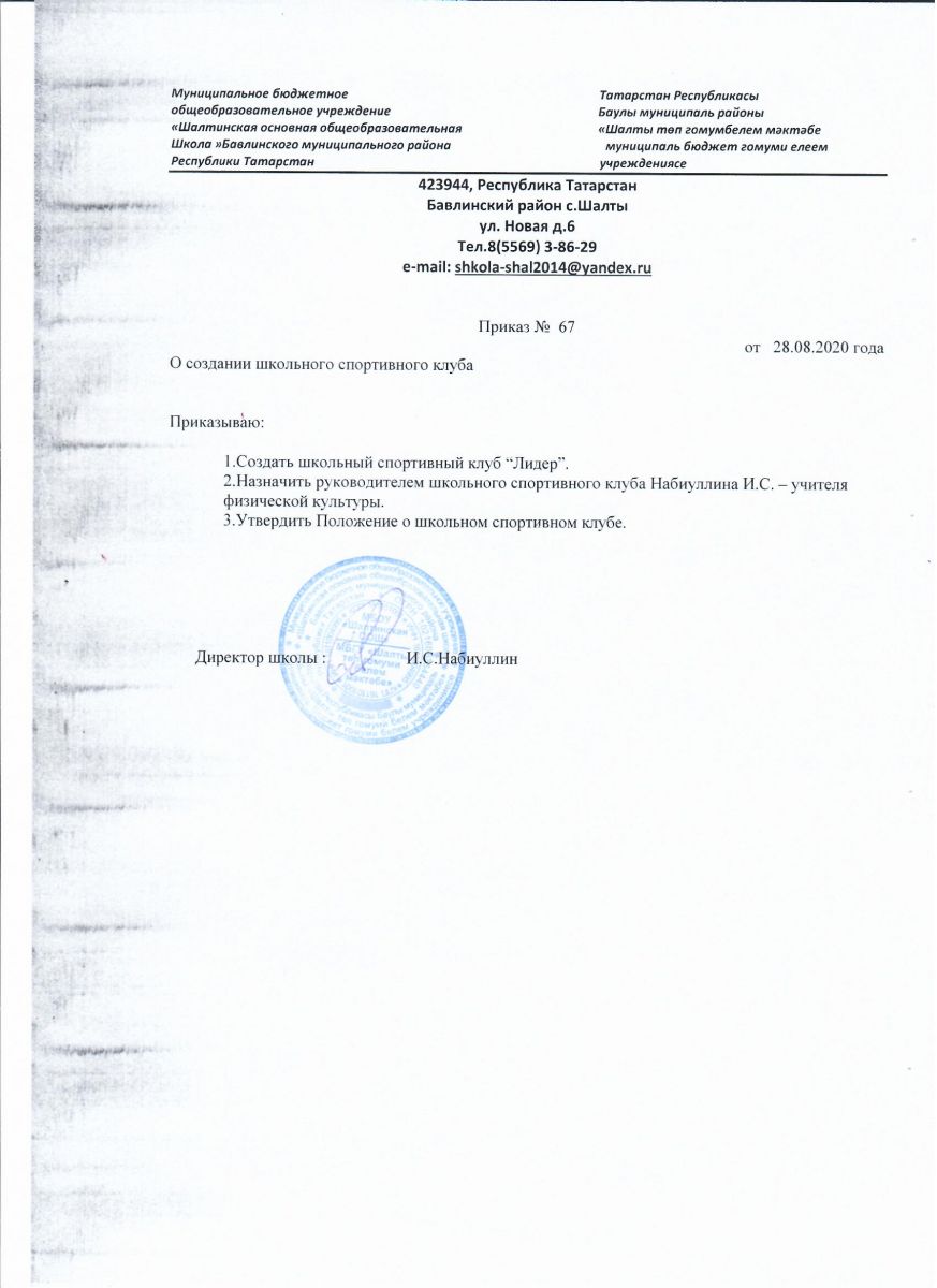 Адрес: 423944, Республика Татарстан, Бавлинский район, c. Шалты, ул. Новая, д. 6