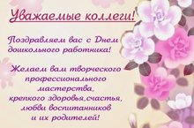 Дорогие коллеги, хотим вас поздравить с Днём дошкольного работника. Желаем всем крепкого здоровья и уважения, жизненных сил и оптимизма, хорошего настроения и удачи. Пусть дети радуют нас своими успехами и дарят нам стимул для нашей деятельности. Счастья нам всем и звонкого смеха рядом! 27.09.2018