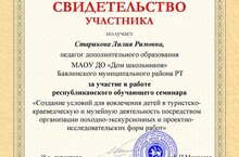Педагог дополнительного образования Старикова Лилия Римовна приняла участие в Республиканском обучающем семинаре.