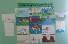 В нашей школе продолжается неделя родного языка. Офомлена выставка рисунков учащихся "Туган җирем - яшел бишек".