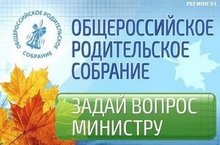 Уважаемые родители! В предверии начала нового учебного года 30 августа 2017 года состоится ставшее традиционным IV Общероссийское родительское собрание с участием Министра образования и науки Россиской Федерации О.Ю.Васильевой. Мероприятие пройдет на площадке общеобразовательной организации г.Москвы в формате видеоконференции с прямыми включениями из регионов России, во время котрых Министр ответит на социально значимые вопросы в области образования. Задать вопросы министру можно уже сейчас. На сайте Минобрнауки России для этого открыт специальный раздел "Общероссийское собрание"-http://минобрнауки.рф/родительское-собрание. Собрание сосотоится в 12.00.