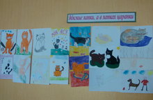 Выставка рисунков "Мягкие лапки, а в лапках царапки", посвященная дню кошек 01.03.2016