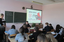 Учитель истории и обществознания Ахмадиева Ю.О. провела в 8 классе классный час "Вместе против коррупции".