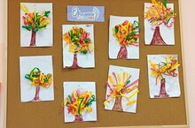 И сегодня орлята третьего класса простились с золотой осенью, которая ежегодно бывает в сентябре-октябре. Ребята выполнили красочные аппликации под названием "Краски осени""