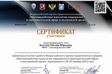 28-29 ноября педагогические работники приняли участие во Всероссийском научно-практическом форуме "Противодействие идеологии терроризма в образовательной сфере и молодёжной среде" 01.12.2023