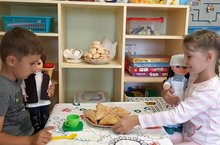 Дети старшей группы познакомились сегодня с новыми куклами. Зовут их Гомәр и Гөлбикә. Дети рассмотрели татарский национальный костюм, спели песню, поиграли с ними в татарскую национальную игру, а затем "угостили" их татарскими национальными блюдами.