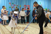 На этой неделе дети поздравили своих пап, дедушек с Днем защитника Отечества. Дети вместе с родителями участвовали в спортивных конкурсах, пели, танцевали, рассказывали стихи. Праздник подарил детям заряд бодрости, оптимизма, хорошего настроения и, конечно, желание служить в Российской Армии.