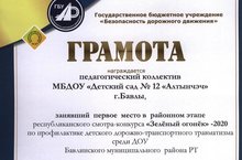 Наш детский сад принял участие в районном этапе республиканского конкурса "Зеленый огонек-2020" и занял призовое 1 место! Поздравляем коллектив детского сада с победой в конкурсе!