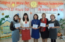 Наша воспитательница по обучению детей татарскому языку Газизуллина Гузель Миргазияновна участвовала в зональном семинаре – практикуме воспитателей по обучению татарскому языку дошкольных образовательных учреждений Республики Татарстан, который проходил в городе Азнакаево. Она выступила по теме: «Рус телле балаларны татар теленә һәм татар телле балаларны ана теленә өйрәтү эшчәнлекләрендә УМК буенча яңа технологияләр һәм ысуллар кулланып эшләү». (Компьютерная презентация)