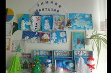 Оформление групповых выставок детских рисунков, аппликаций, творческих семейных работ по теме «Зима».