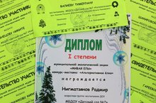 "Укучылар йорты" өстәмә белем бирү муниципаль автоном учреждениесе тарафыннан уткәрелгән "Живая ель!" экологик акциясендэ безнең балалар бакчасында тәрбияләнүче Нигматзянов Радмир (тәрбиячеләр Коптеева А.К., Казакова Р.М.) һәм Газиева Эльвина (тәрбиячеләр Фомичева Г.А., Апсаматова И.Т.) призлы урыннарга лаек булдылар.
