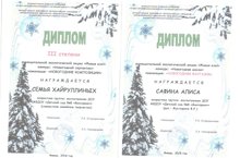 Диплом в номинации "Новогодняя фантазия" Сафина Алиса 6 лет