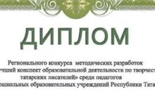 Победители Регионального конкурса методических разработок «Лучший коспект образовательной деятельности по творчеству татарских писателей» среди педагогов дошкольных образовательных учреждений РТ: Иванова Ольга Даниловна, Ахмадуллина Светлана Денисовна, Ендирякова Фарида Фаритовна, Тимофеева Лилиана Ринатовна, Тухбатуллина Римма Римовна, Рамазанова Айгуль Наилевна, Сунгатуллина Райса Фахрисламовна. Поздравляем и желаем дальнейших успехов!