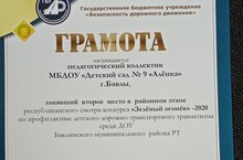 Мәктәпкәчә белем бирү учреждениеләре арасында балалар юл-транспорт имгәнүләрен профилактикалау буенча "Яшел ут-2020" республика конкурсының муниципаль этабына йомгак ясалды. Безнең педагогик коллектив 2 нче урынны алды. Котлыйбыз!!! Афәрин!
