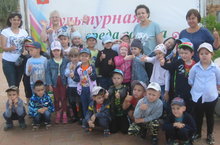 Наш коллектив участвовал в параде колясок . Наша композиция "Колобок и Лиса" (воспитатель Рамазанова А.Н. с дочкой)
