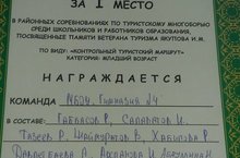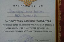 Котлыйбыз!!!Грамота за хорошую подготовку команды победителя районных соревнований по туристическому многоборью среди школьников и работников образования , посвященные памяти ветерана туризма Якупова И.М. 25.09.2017