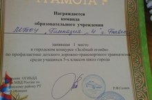 1 нче урын. Район күләмендә уздырылган "Яшел ут " конкурсында катнашу. 15.09.2017