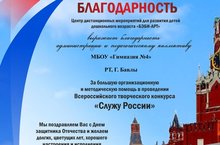 Благодарность за организацию и методическую помощь в проведении Всероссийского творческого конкурса "Служу, России!". 07.03.2017