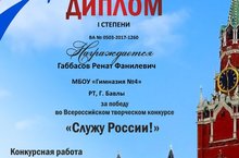 Поздравляем Габбасова Рената!!!Диплом 1 степени! Всероссийский творческий конкурс "Служу, России!". 07.03.2017