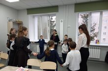 Учащиеся педагогического класса с начальными классами играли на перемене в народные игры.