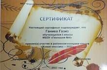 24 ноября 2022 года на баще МАОУ ДО "Дом школьников" проел районный конкурс юных чтецов "Живая классика". Ученик 3 класса Ганиев Газиз принял активное участие. Позравляем.
